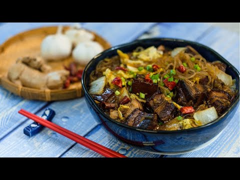 Video: Braised Pork Belly With Vermicelli Noodles & Napa Cabbage (猪肉白菜炖粉条)